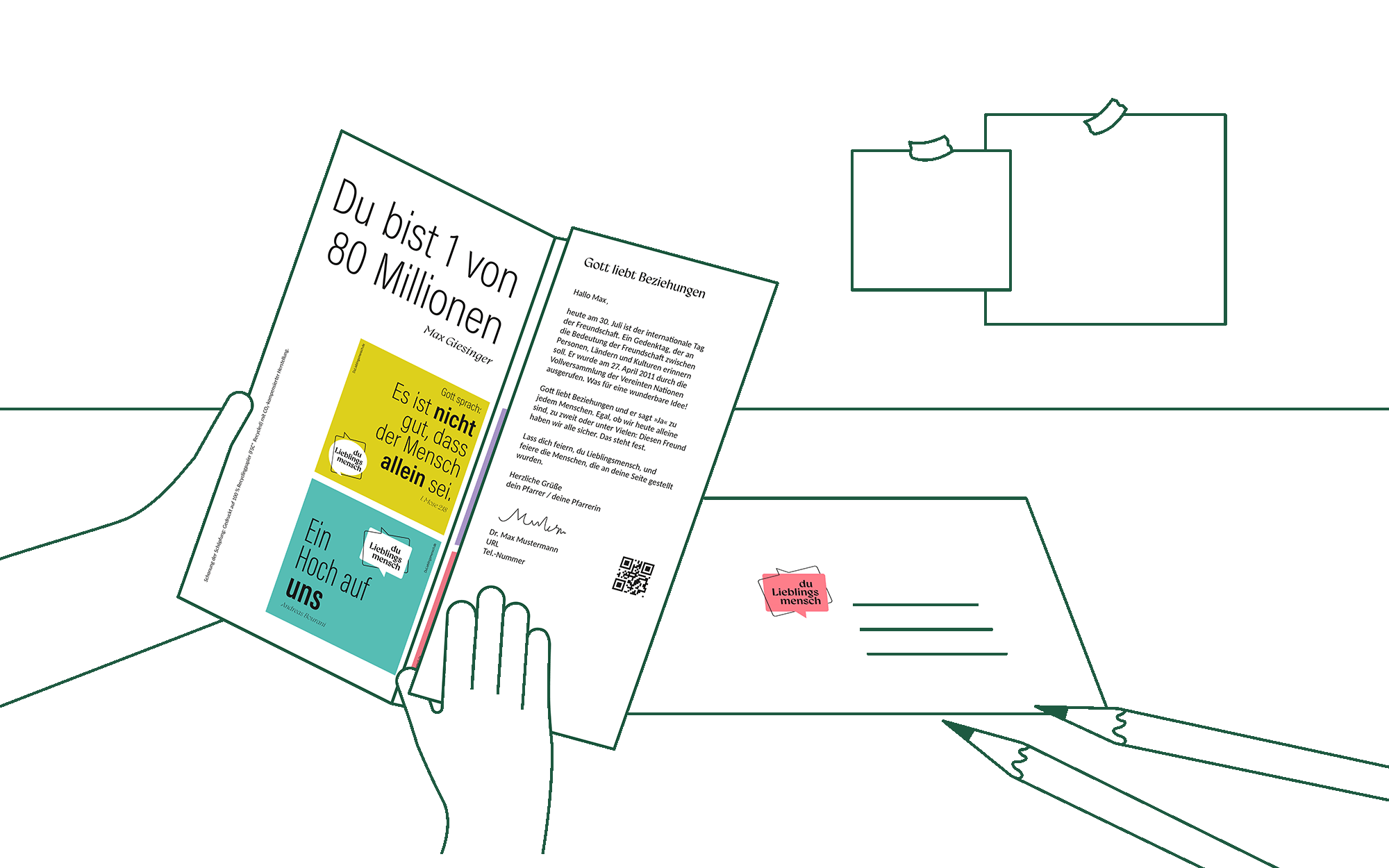 Beziehungsübergreifend gibt es einen passenden Begriff (und sogar einen Song) … ›Lieblingsmensch‹. Könnte mein bester Freund sagen. Könnte auch Gott sagen. Sagen wir es eben im Chor. Du Lieblingsmensch – eine klare Ansprache und nicht nur ein dahingesagter Begriff. Ein leicht zu merkendes Motto – und ein ungesehenes Design mit hohem Wiedererkennungswert.
