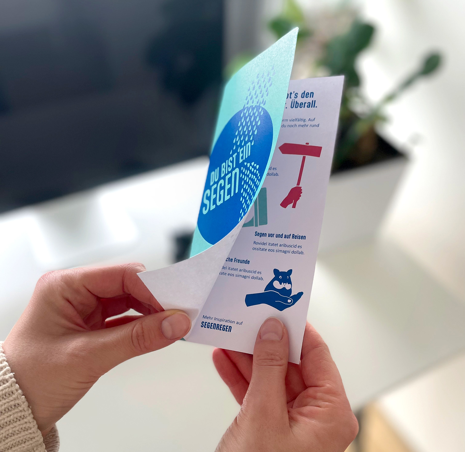 Schlechte Nachrichten gibt es tagtäglich im Überfluss. Wo bleiben die guten Nachrichten? Zuspruch, Ermutigung, Durchatmen, Pause, Positives, Rückendeckung … das alles steckt im Segen. Nicht zufällig. Sondern mit voller Absicht. Und wer weiß das? Viel zu wenige. Also los!